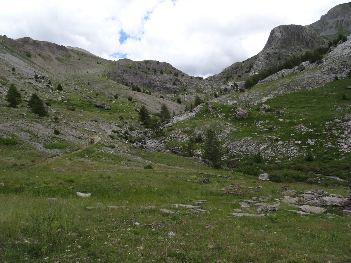 Par chance, on est à quelques mètres de la route qui mène, entre autres, au col de Larche. Deux options se présentent à nous : soit je remonte au col par la route en VTT (17km et 800 m de dénivelé...) ou on cherche une voiture pour me remonter au col.